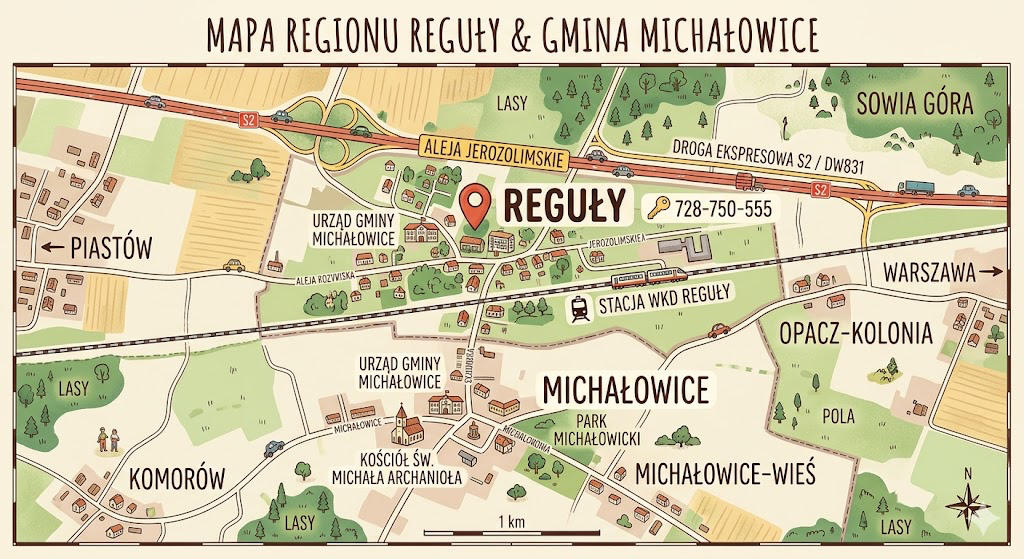 - Ekspresowy dojazd do Reguł: Dzięki lokalizacji blisko Al. Jerozolimskich i trasy S7, docieramy na miejsce w czasie od 10 do 20 minut.
